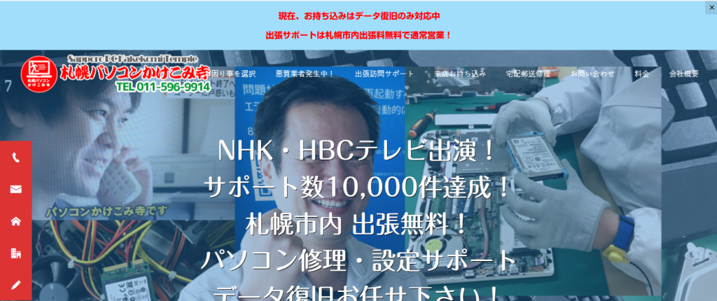 札幌パソコンかけこみ寺はPC修理と設定サポート出張訪問無料