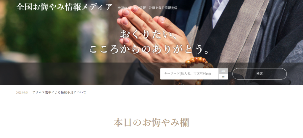 全国お悔やみ情報メディア – 全国のおくやみ情報・訃報を毎日情報発信
