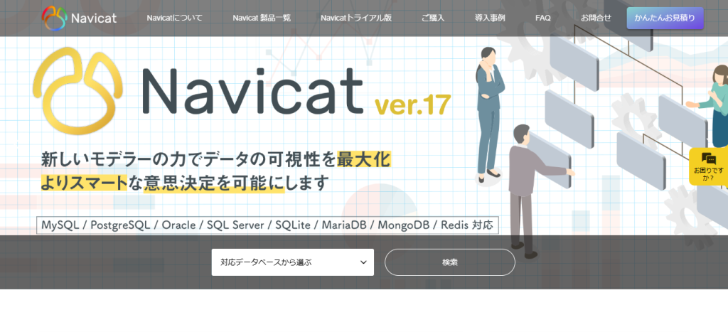 Navicat データベース管理ツール | 法人様向け販売サイト – 法人様に便利な各種書類発行・様々な支払い方法に対応。全世界300万ユーザに利用されているデータベース管理ツールNavicat 販売サイト 。MySQL , PostgreSQL , SQL Server , Oracle DB, SQLite,MariaDB など多種DBに対応。
