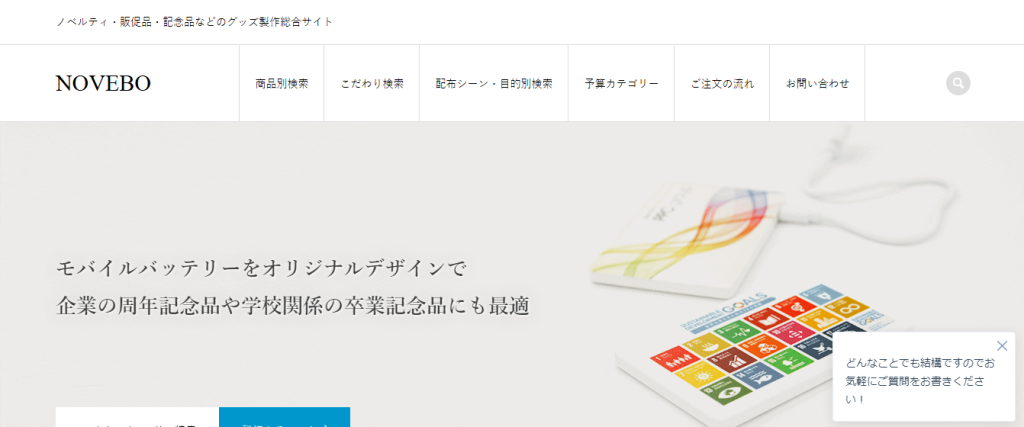 NOVEBO | ノベルティ・販促品・記念品などのグッズ製作総合サイトこのサイトが使用しているテーマはこちら
