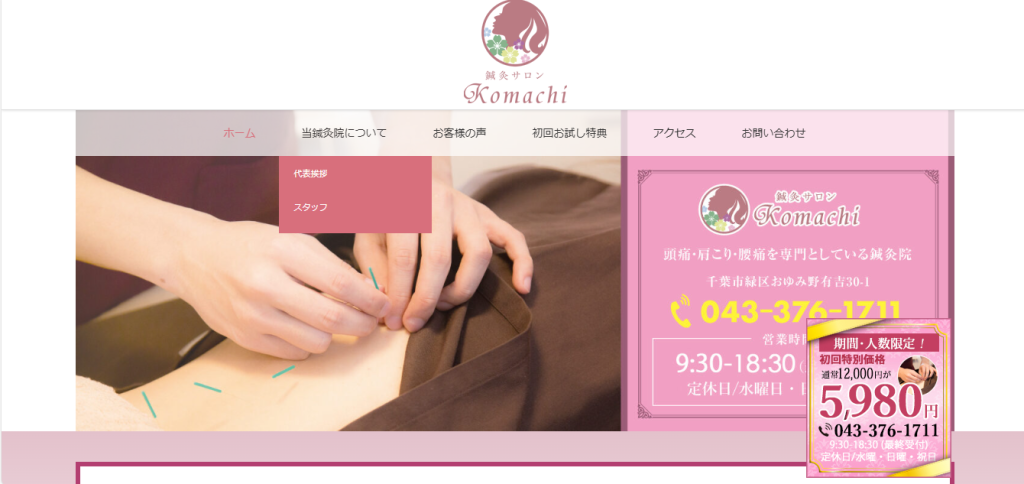千葉で頭痛・肩こり・腰痛が専門の鍼灸サロン Komachi