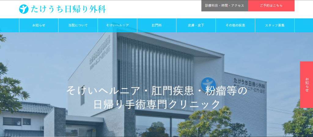 たけうち日帰り外科 – 高松市 – そけいヘルニア(脱腸)・肛門科・粉瘤等の日帰り手術専門クリニック