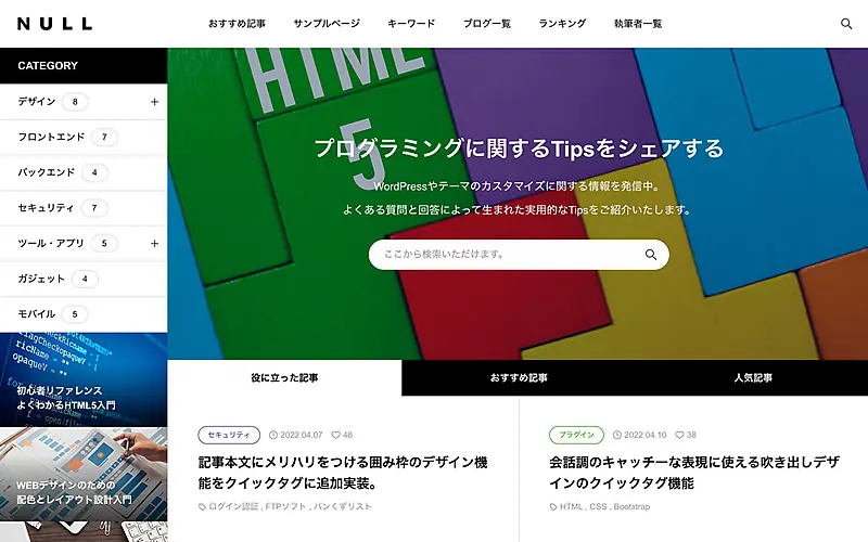 - 3つのヘッダータイプ(記事&コンテンツスライダー・フロントカバー)