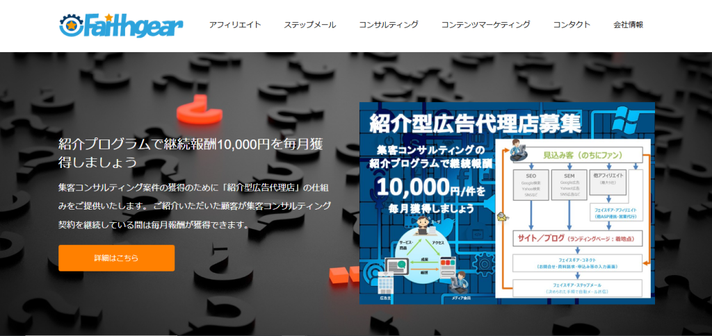 クローズド型アフィリエイトASP | フェイスギア | 広告代理店このサイトが使用しているテーマはこちら