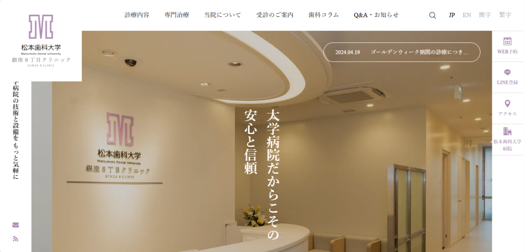 松本歯科大学銀座8丁目クリニック|インプラント 口腔外科 矯正歯科 歯内治療 歯周治療 |歯科大学病院|東京 銀座 新橋 中央区