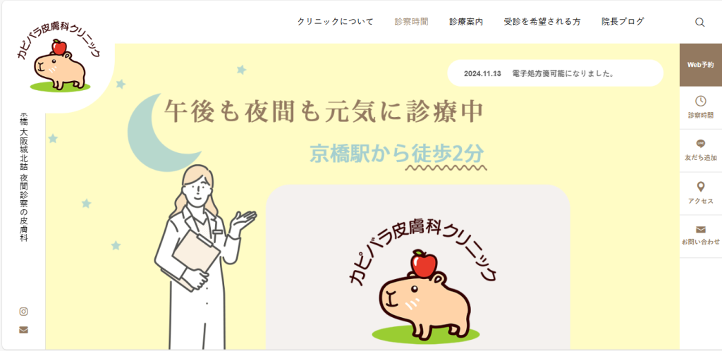 カピバラ皮膚科クリニック │大阪市 京橋駅近くの夜間診察の皮膚科