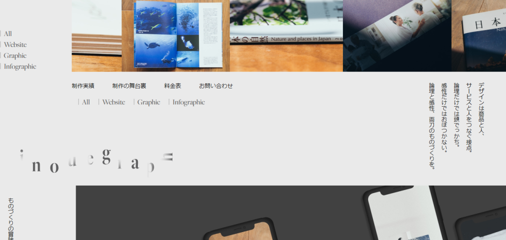 inouegraph – 商品と人、 サービスと人をつなぐWebサイト作り。よい商品を販売しているのに、その良さを伝えきれていない。求める人に届いていないという問題。デザインは、商品と人、サービスと人とが出会う接点のような役割です。 作り手側に寄り添って、その良さを引き出すことが、私の仕事であり、情報を整理して形にすることがデザインです。